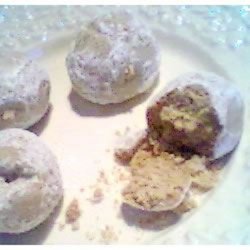 3Roll cookie dough into walnut sized balls and place them on an unprepared cookie sheet. Bake for 15 to 20 minutes in the preheated oven. Cool slightly, then roll in confectioners' sugar.