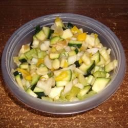 2Combine the onion soup mixture with the sugar, salt, pepper, oil, cider vinegar, bell pepper, celery and zucchini. Chill 4 to 6 hours, stirring occasionally. Drain off any extra liquid before serving.
