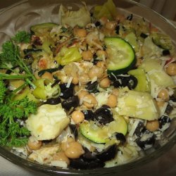 "I made up this salad because our garden is simply overflowing with zucchini! We ate it as a main dish for dinner tonight with Italian seasoning-covered rolls on the side, but it could easily be eaten as a side dish."
