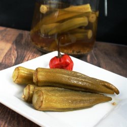 2Sterilize jars and lids in boiling water for at least 5 minutes. Pack okra, 1 pepper, and 1 garlic clove tightly into each of the hot, sterilized jars; sprinkle mustard seeds over the top. Pour vinegar mixture into each jar, leaving 1/2-inch space at the top. Wipe the rims of the jars with a moist paper towel to remove any food residue. Top with lids and screw on rings.