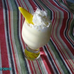 Place the mango cubes, ice, sugar, pineapple juice, cream, and coconut milk into a blender. Puree until smooth, pour into glasses and serve.
