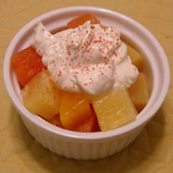 "A yummy and refreshing fruit salad with or without the dip. You should be able to find all of the fruits in larger grocery or special food stores. You can substitute almond extract for the vanilla extract, if you wish."