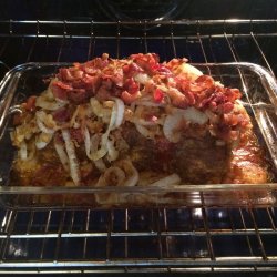 5Bake in the preheated oven until the meatloaf is no longer pink inside, about 45 minutes. Spread French-fried onions over the top of the loaf and return to oven until onions are browned and an instant-read meat thermometer inserted into the center of the loaf reads at least 160 degrees F (70 degrees C), 10 to 15 more minutes.