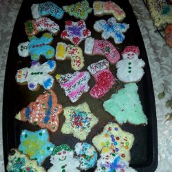 3When the dough is smooth, roll it out to 1/4 inch thick on a floured surface, and cut into cookies. Place cookies on the prepared cookie sheets.