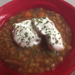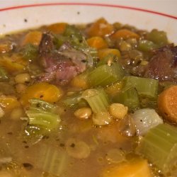 "Come home at the end of the day to a richly spiced broth filled with lentils, ham and veggies. Pair it up with cornmeal muffins and you have a great meal!"