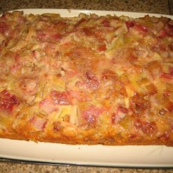 Place chopped rhubarb on the bottom of greased 9x13 inch pan. Sprinkle sugar evenly over rhubarb. Sprinkle marshmallows over rhubarb and sugar.