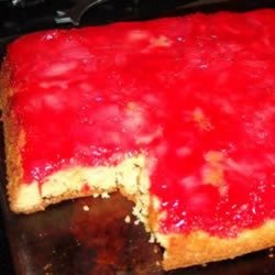 Prepare cake mix according to instructions on package. Pour over rhubarb and marshmallows in pan.