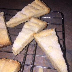 "This simple shortbread cookie is baked in a nine inch round cake pan, and cut into wedges."