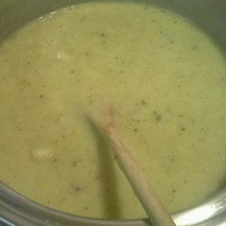 2Remove tough outer skin of broccoli stems and cook broccoli. Once cooked add to soup.