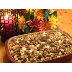 5Bake in the preheated oven for 30 minutes, then remove the aluminum foil, and stir the stuffing. Return to the oven and continue baking until golden brown on top, about 15 minutes more.