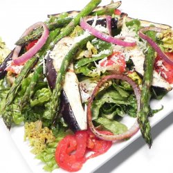 5Serve grilled vegetables atop the dressed lettuce mixture; sprinkle with Parmesan cheese.