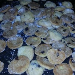2In a medium bowl, cream the shortening and sugar together. Beat in the eggs, one at a time, and 2 teaspoons of vanilla. Sift together the flour, baking soda, and salt; stir into the creamed mixture. Drain the raisins and stir them into the mixture.