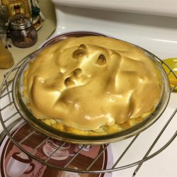 "Delicious vanilla pudding is made from scratch on the stove top, then layered in a deep dish pie shell with banana slices. The pie is then covered with meringue and toasted in the oven."