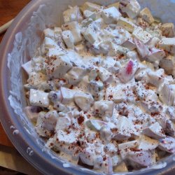 Drain the apples and add to the mayonnaise mixture, along with the celery and raisins. Stir until ingredients are evenly coated.