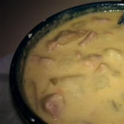 1Place potatoes, onion, and cubed ham in large stockpot. Cover with water. Cook until potatoes are almost tender.