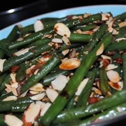 2Place the almonds in a heavy skillet over low heat; cook until golden. Toss almonds into the green bean salad. Serve at room temperature or chilled.