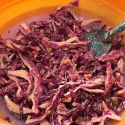 1Combine cabbage, red bell pepper, shallots, ginger, and basil in a large bowl. Whisk mayonnaise, lemon juice, olive oil, wasabi paste, and ground pepper in another bowl; stir into cabbage mixture. Top with pine nuts and sunflower kernels.