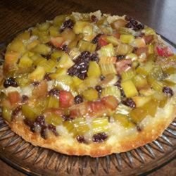 2Mix rhubarb with 2 cups sugar in a large bowl and spread into the prepared baking dish; sprinkle rhubarb with raisins.