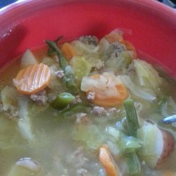 In a large pot, combine water, bouillon, potatoes, carrots, and cabbage. Bring to a boil. Lower temperature, and simmer.