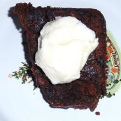 "Very sweet steamed pudding, more like a cake, that is typically served at holiday time. I cook this into my double boiler. Even though this cooks on simmer, it is wise to check that the pan does not boil dry! This is traditionally served with hard sauce."