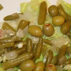 "Cool marinated summer salad for olive lovers. Easy and pretty enough for a party."