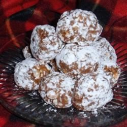 "This reminds me of figgy pudding. It can be made year round! These will be sticky! They may need to be rolled in confectioners' sugar again before presentation because the moisture of the cookies absorbs it!"