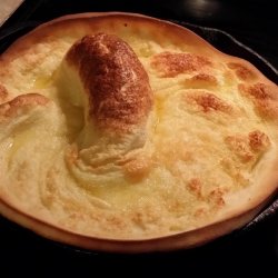 2In a medium bowl stir together sugar, flour, and salt. Add eggs and milk. Beat with an electric mixer until blended. Batter will be very thin. Melt butter in the baking pan. Turn the pan to be sure all of the sides are coated then stir the remaining butter into the batter.