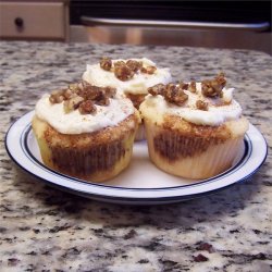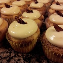 9Frost cooled cupcakes with frosting and decorate each with a pinch of chopped pecan candy and a sprinkle of cinnamon.