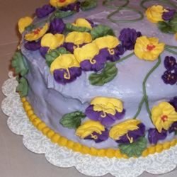 "An elegant three layer cake that is moist and spicy and frosted with a delicious cream cheese frosting. This is a family favorite at Christmas in our household! I cut red and green candied cherries in half and decorate the top in a wreath pattern."