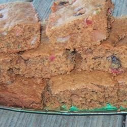 2In a large bowl, cream the butter or margarine with the sugar and molasses. Beat in the eggs, then the beer. Beat the flour mixture into the creamed mixture. Stir in the raisins, orange peel, and almonds. Turn the batter into a greased and floured 9 x 13 inch baking pan.