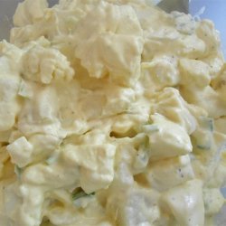 1Place potatoes into a large pot and cover with salted water; bring to a boil. Reduce heat to medium-low and simmer until tender, about 20 minutes. Drain and cool potatoes, then peel and dice. Cover and refrigerate overnight.