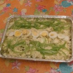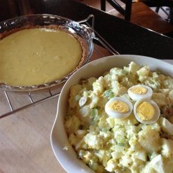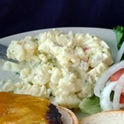 "My mother's potato salad -- chunky and flavorful -- a favorite at our family gatherings. Best if made the day before. Season with salt carefully because the olives will be salty."