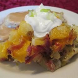 "Passed down from my German/Dutch Grandmother. A hot potato salad with bacon, cheese and a creamy/vinegar sauce makes this a wonderful dish to serve with bratwurst on a cold fall day in Deutschland or wherever you might be. I usually double the bacon and sauce to make this extra flavorful."