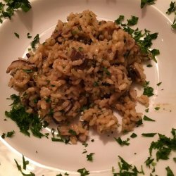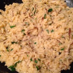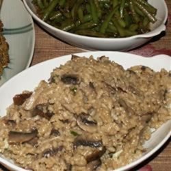 1Heat olive oil in a large saucepan over medium-high heat. Stir in shallot and cook for 30 seconds, then add shiitake and cremini mushrooms, and cook until they begin to brown. Stir in 2 tablespoons butter and Arborio until rice is well coated in oil; reduce heat to medium, and cook until the shallot and mushrooms have turned golden brown.