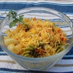 "I came up with this one night out of necessity and cannot stop eating it! It's good hot or cold, and you can add or change things. Bring a big bowl to a potluck and watch it disappear!"