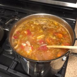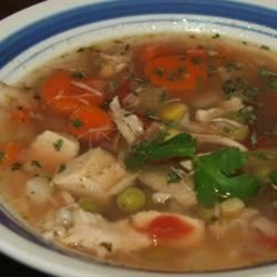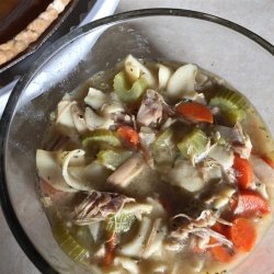 "A great way to not waste a single bite of turkey. This is a delicious soup and one of my favorites. If you want to freeze some, leave out the potatoes."