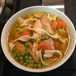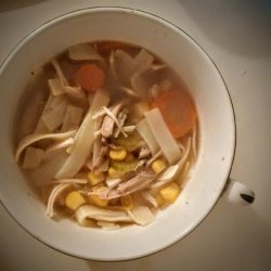 "This easy and delicious turkey soup is made using leftovers from Thanksgiving or Christmas dinner. I usually make cornbread muffins to serve with it."