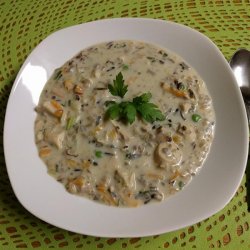 3Stir in the wild rice, turkey, salt, pepper, and almonds. Return to a simmer, and cook 2 more minutes to heat the ingredients. Stir in the lemon juice and half-and-half; bring the soup almost to a boil, and serve hot.