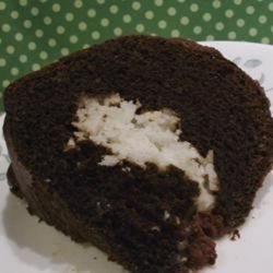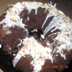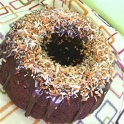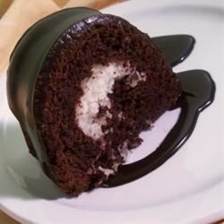 "Love Macaroon Cookies? You'll love this recipe for chocolate cake with macaroon in the center! Melted chocolate can be drizzled on top, or sprinkle top with confectioners' sugar."