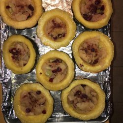 4Bake squash and apple mixture in the preheated oven until squash and apple are tender, about 45 minutes. Fill squash halves with apple mixture; drizzle with maple syrup and sprinkle with cinnamon.