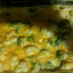 4Pour sauce over broccoli and cauliflower. Bake in the preheated oven 30 minutes, until bubbly and lightly brown. Sprinkle with remaining cheese during the final 10 minutes of cooking.