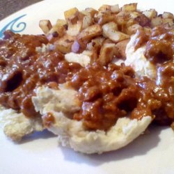 "Vegetarian sausage links can be bought at many supermarkets, experiment with the different brands and choose your favorite for this delicious gravy. If you would like a thicker gravy dissolve 1 tablespoon of cornstarch in 1 tablespoon warm water and mix into the gravy just before bringing it to a boil."