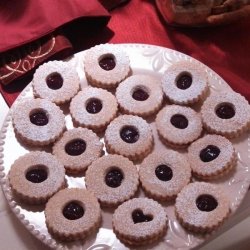 After completing step 2: Roll the dough out to 1/8 inch thickness and cut into rounds using a cookie cutter. Place cookies onto a cookie sheet spaced 2 inches apart. Count your rounds and use a small cookie cutter to cut the center out of half of the cookies. This can be done while the other half of the cookies bakes.