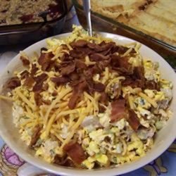 2In a large bowl, combine the mayonnaise, celery, 1 cup of the cheese, water chestnuts, 1/2 cup bacon, carrots and chives. Mix well. Add popcorn and stir to coat. Sprinkle with remaining cheese and bacon and serve immediately.