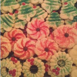 3Beat the butter and sugar with an electric mixer in a large bowl until smooth. Beat in the egg yolks and the almond extract. Slowly mix in the flour, just until incorporated. Use a spritz style cookie maker to press cookies onto prepared baking sheet.