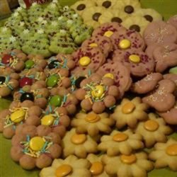 3Fit flower crown design into cookie press. Place 1/2 of the dough in cookie press at a time, forcing dough through press, about 1 inch apart, on ungreased baking sheets.