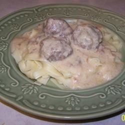3Sift the flour into the skillet drippings; cook the flour in the skillet drippings until brown, 2 to 3 minutes. Slowly stream the milk into the skillet while whisking vigorously; pour the cream into the mixture and stir until smooth. If you aren't good at making gravy and end up with some lumps you can pour the gravy through a strainer. Return all the meatballs to the skillet; stir to coat with the gravy. Bring the mixture to a simmer and cook until the meatballs are cooked through, 15 to 20 minutes.