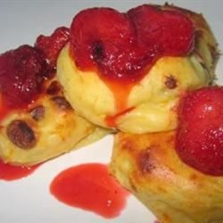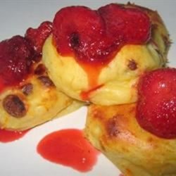 "This is a traditional dessert served in Russia. Cottage cheese is first sweetened with sugar, then kneaded into a dough with flour. The resulting disks are fried to a golden brown in hot oil. They are best served with sour cream and jam."