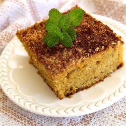 3Stir buttermilk, eggs, and baking soda into crumbly mixture until batter is smooth. Pour batter into the prepared baking dish. Sprinkle reserved crumbly mixture over top of batter; top with cinnamon.