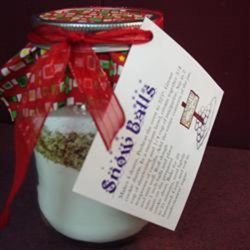 2Snow Balls, Makes 4 dozen. Preheat the oven to 325 degrees F (165 degrees C). Grease cookie sheets. In a medium bowl, cream together 3/4 cup of shortening and 1/4 cup of margarine. Stir in 2 teaspoons of vanilla. Add the entire contents of the jar, and mix well. Roll dough into 1 inch balls and place them on the prepared cookie sheet. Bake for 20 to 25 minutes, until lightly browned. Cool, and roll in confectioners' sugar.